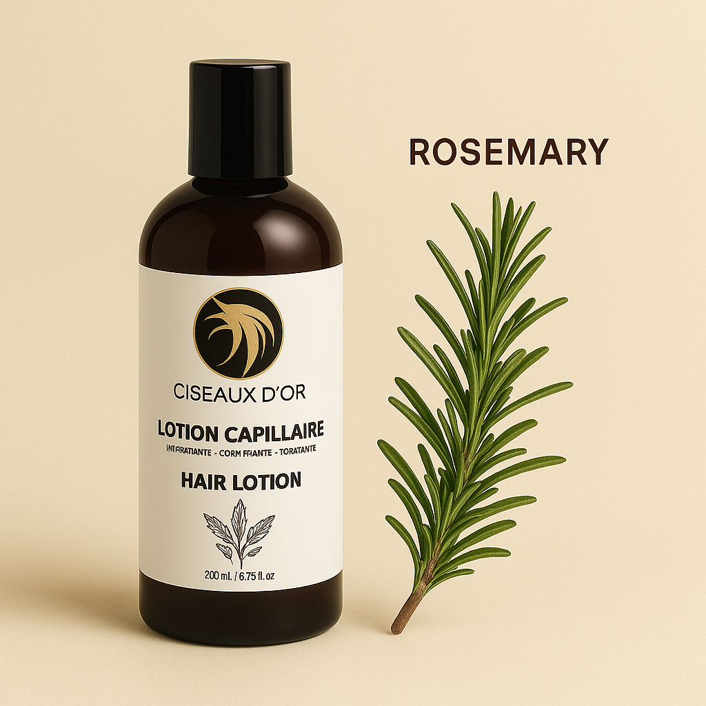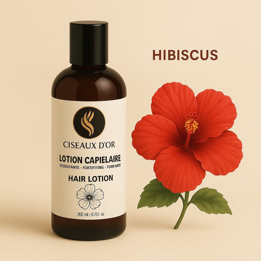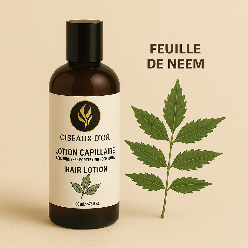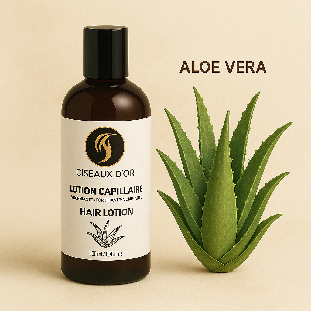 La lotion capillaire Ciseaux d’Or est formulée pour répondre aux besoins essentiels du cuir chevelu et des cheveux texturés comme naturels.