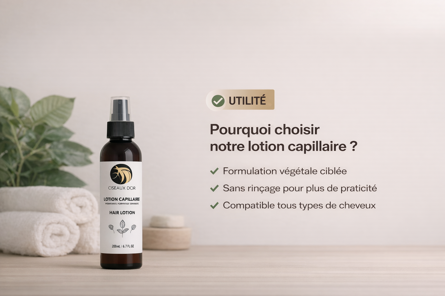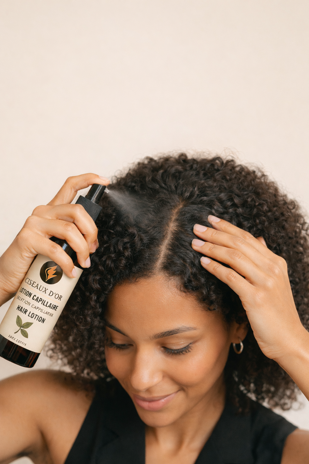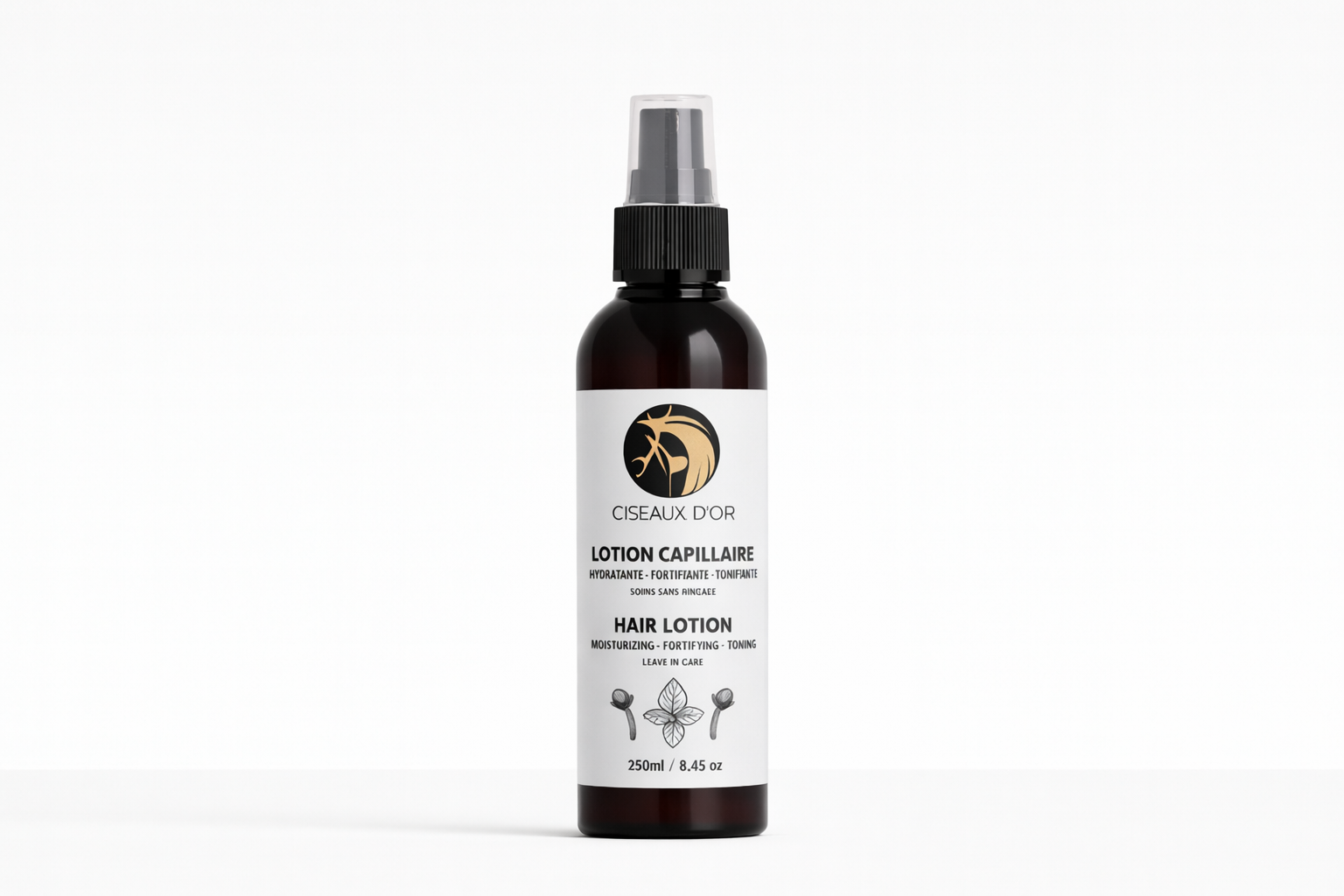 La lotion capillaire Ciseaux d’Or est formulée pour répondre aux besoins essentiels du cuir chevelu et des cheveux texturés comme naturels.