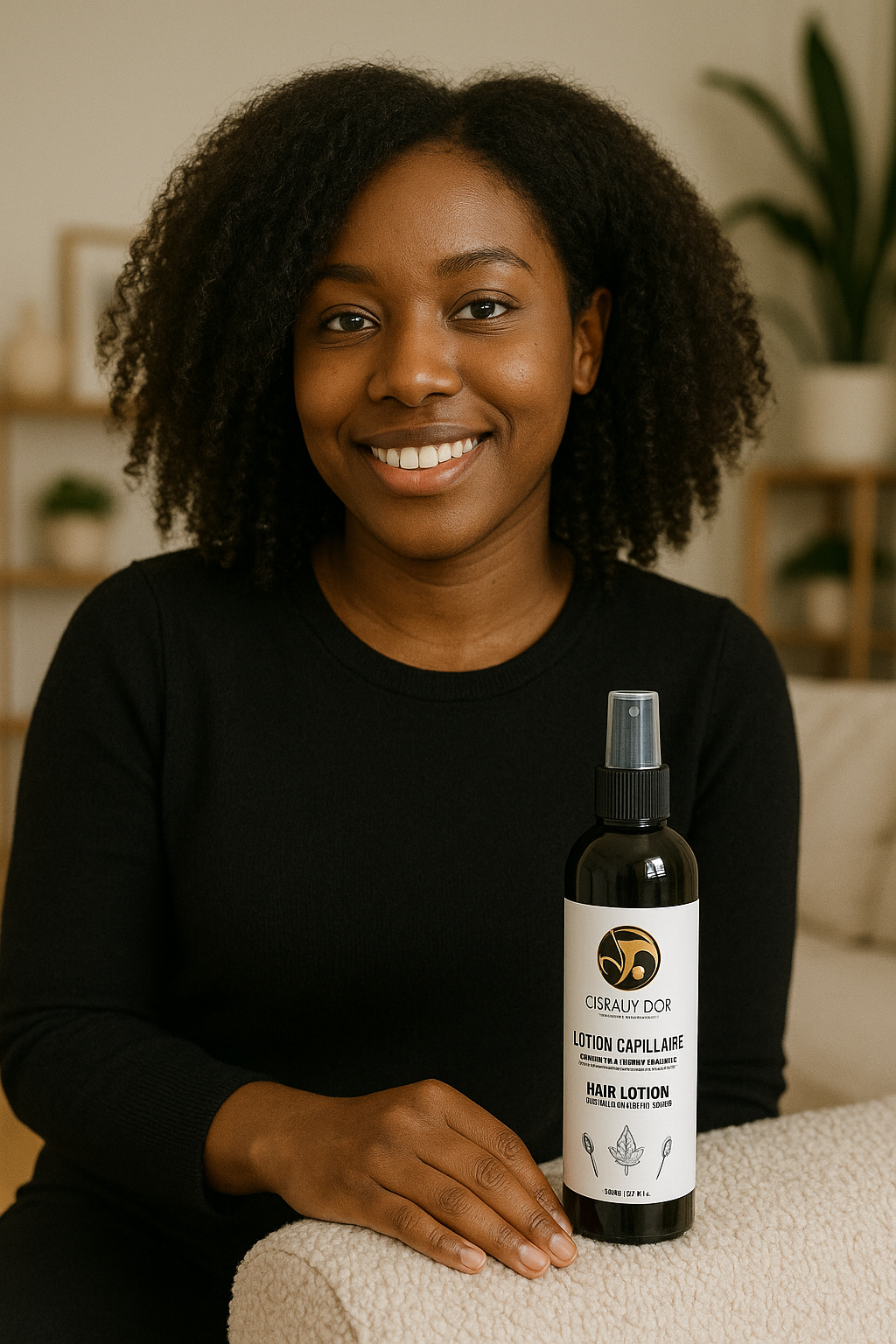 La lotion convient à tous types de cheveux naturels, bouclés, frisés, crépus ou lissés.